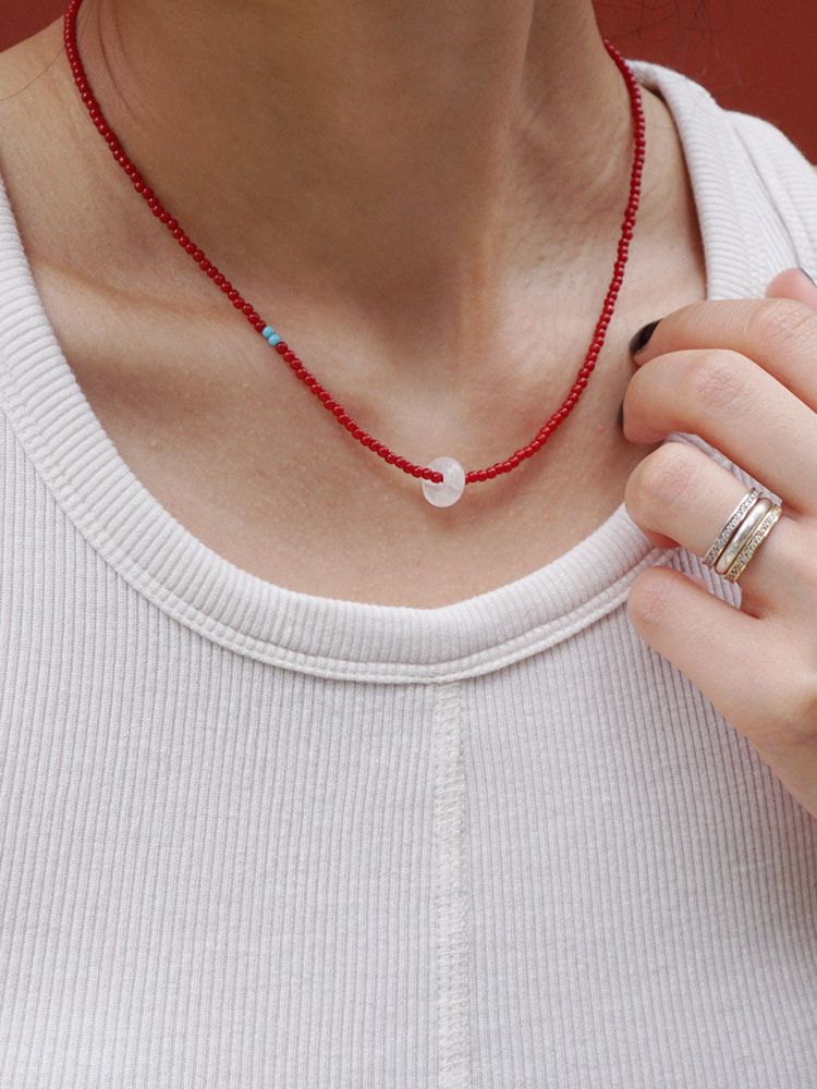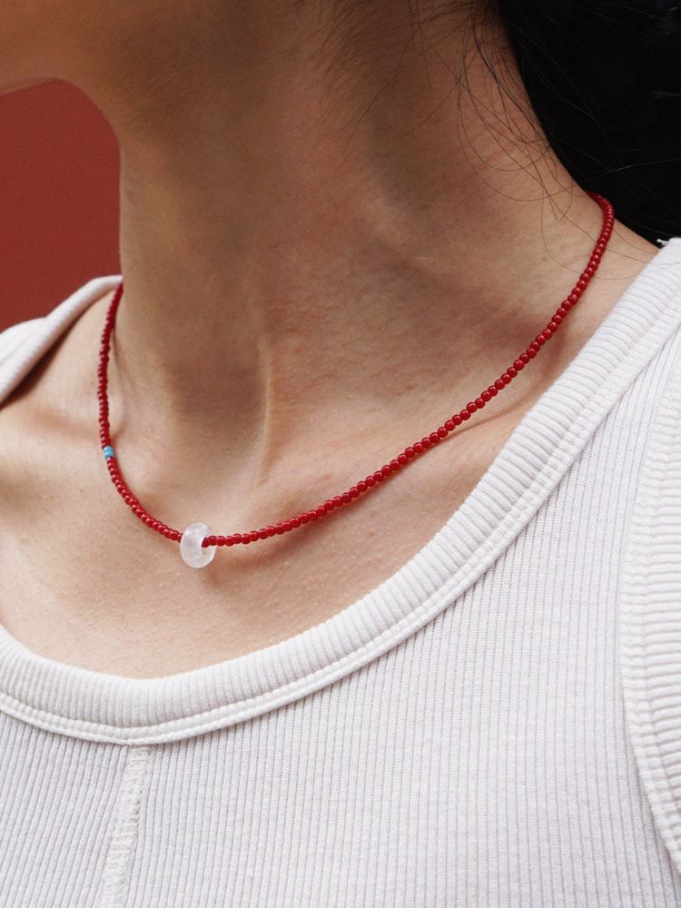 RED BEADS DONUT NECKLACE