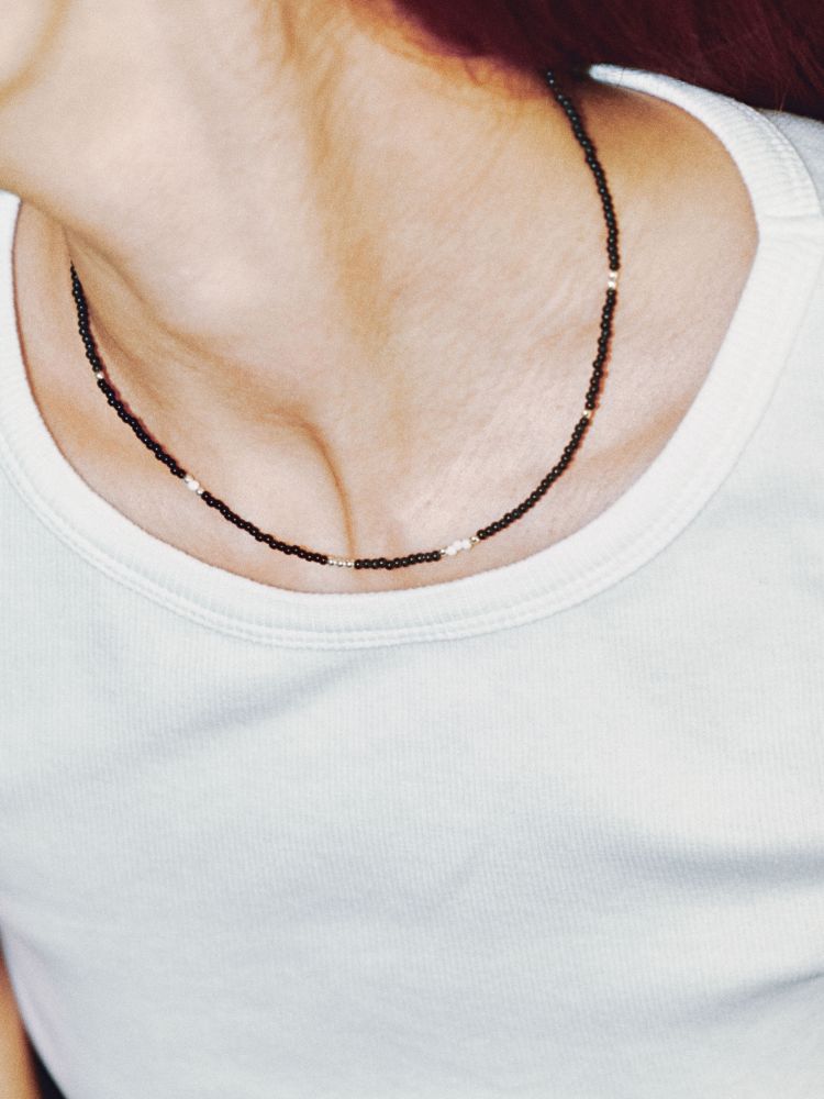 LOVE SKINNY BEADS NECKLACE BLACK